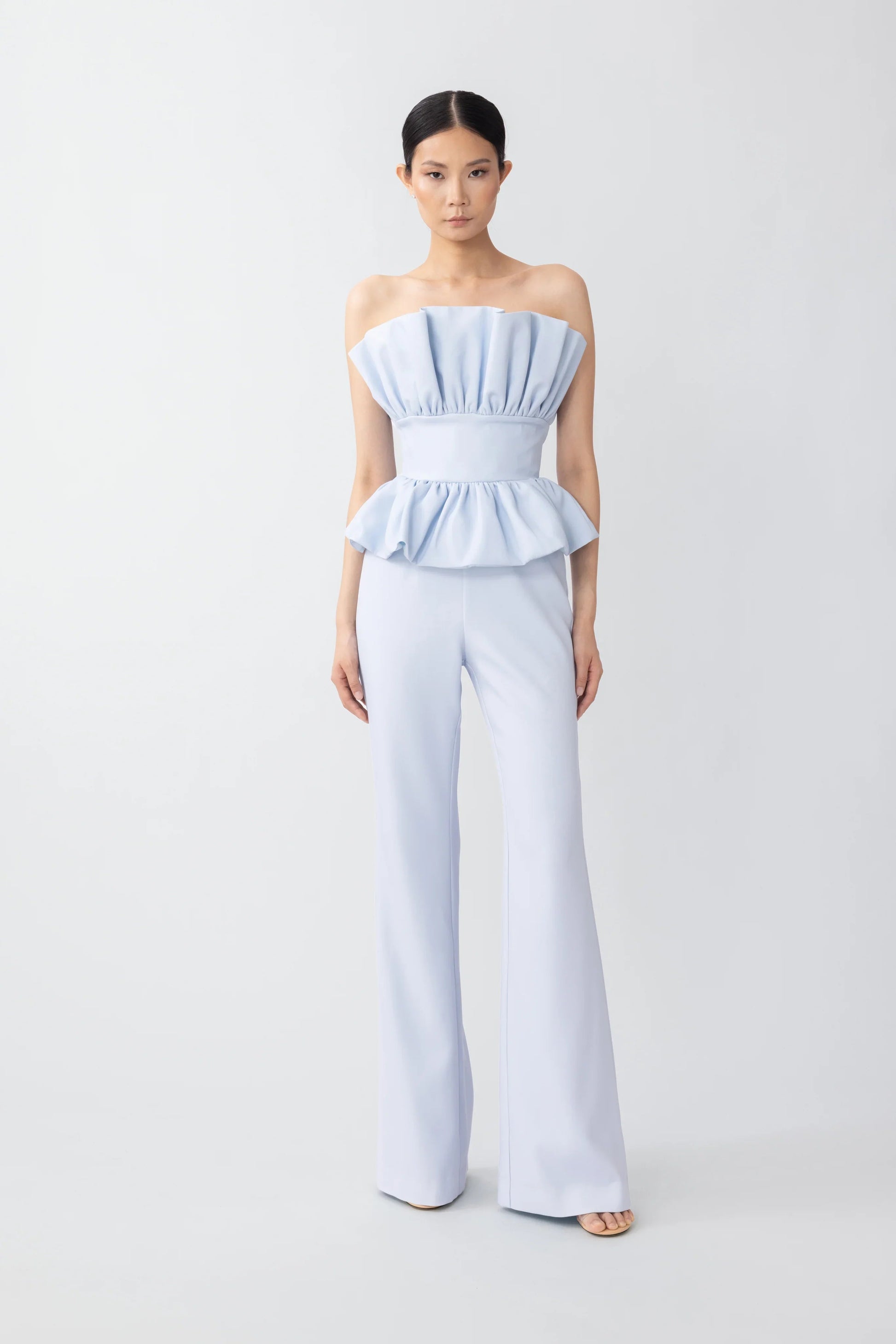 Tailored flared crepe pants with a flattering silhouette. Pair with the Noah Crepe Top
