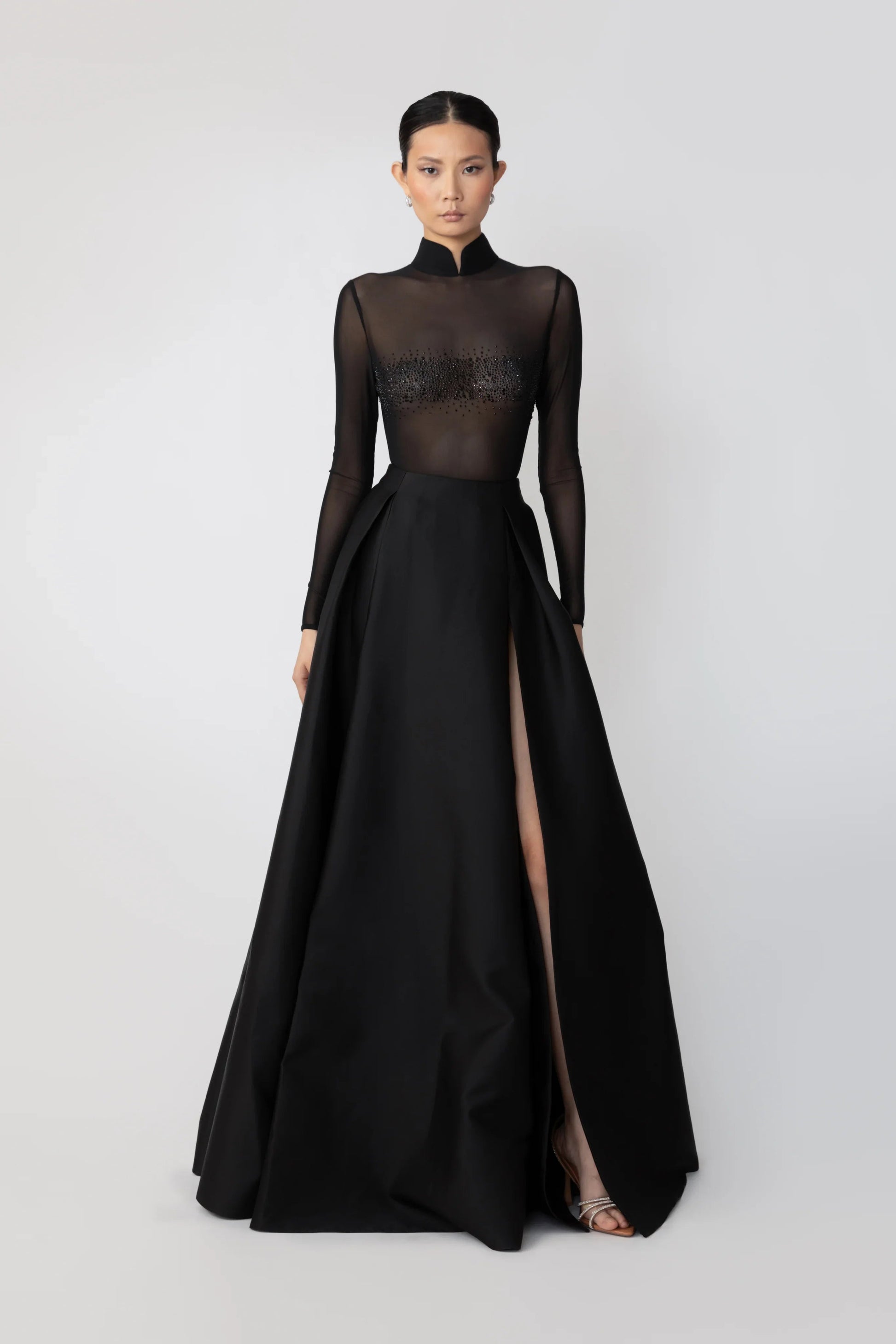 Voluminous taffeta maxi skirt with pockets on the sides and a hidden zipper at the back