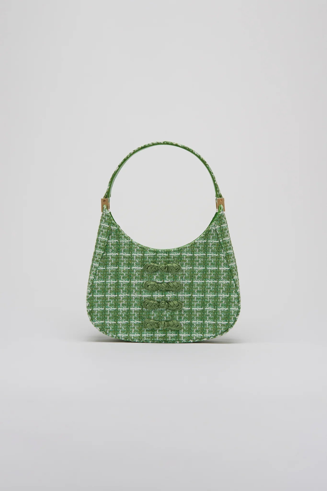 The mini sau tweed is the perfect addition to your Spring looks. Featuring its signature curved silhouette with emblematic hand-tied pipa knot buttons, this versatile bag is designed in stylish pastel hues that are ideal for the modern city girl.