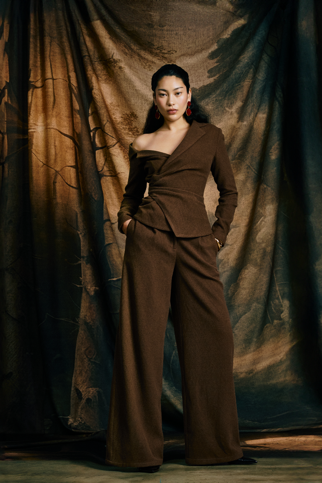 The Neve Pant is a wide-leg tailored style crafted from wool blend. Featuring a fluid cut that elongates the silhouette, it’s designed to pair with the Neve Top for a modern workwear ensemble.