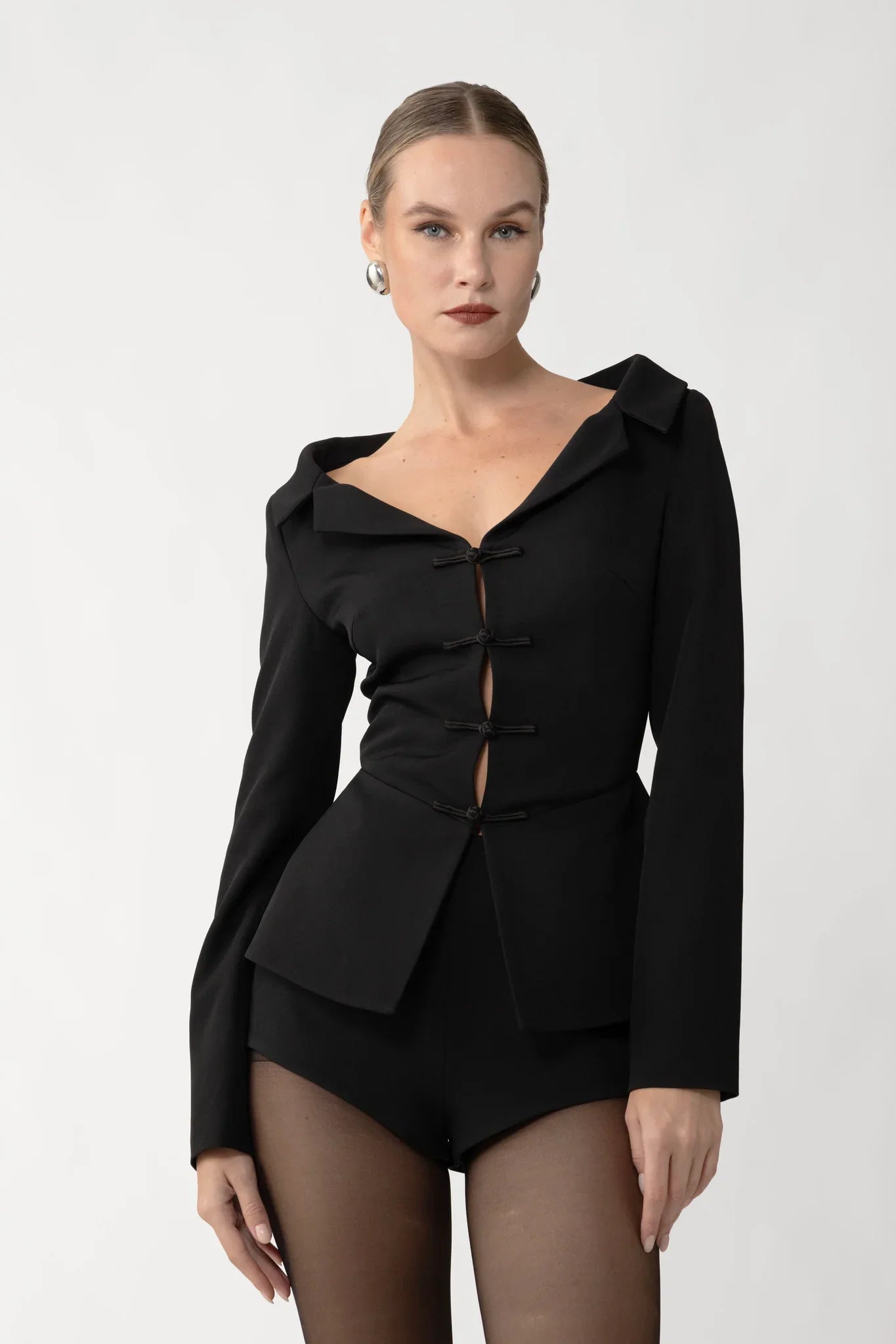 The micro Niki Shorts are cut from crepe to create a figure-hugging, elongating silhouette. Features our signature hand-tied pipa knot detailing.