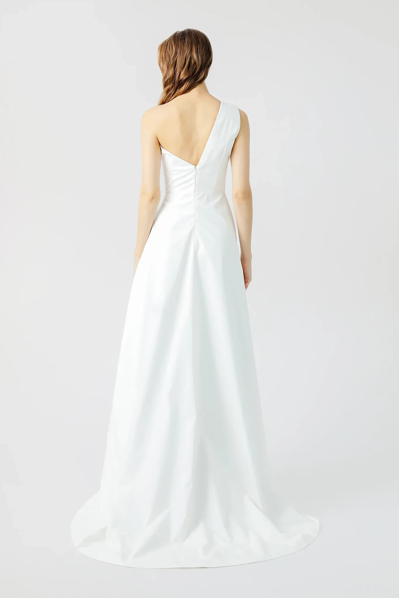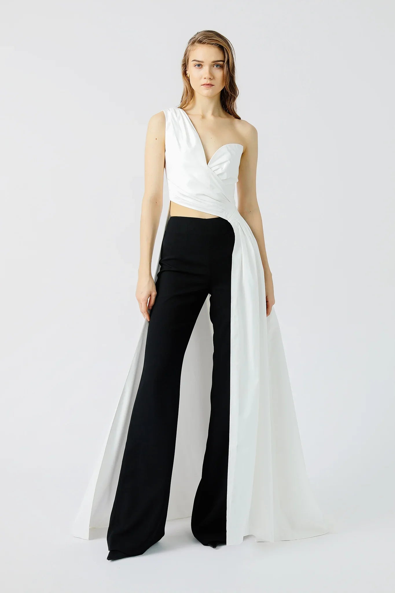 Thalia is a dramatic top designed to style your way for any occasion. The perfect piece to mix and match day to evening. Featuring a tailored asymmetrical sweetheart neckline with structured pleated detail and a floor-sweeping train.
