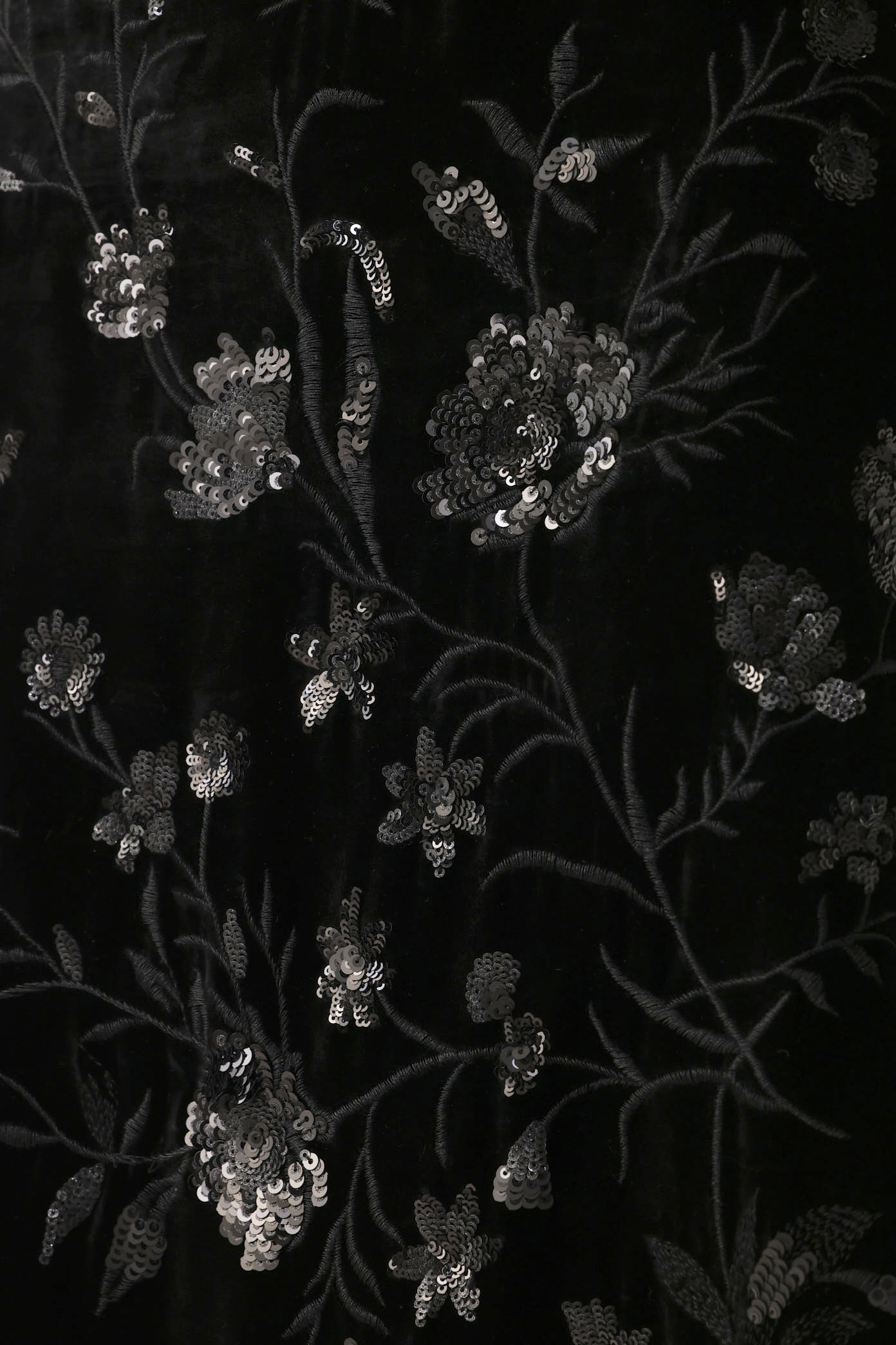 The Winter Dress is crafted from silk velvet embroidered with tonal sequin florals.